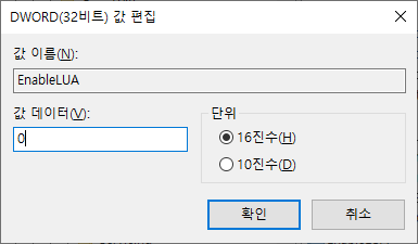 UAC(User Account Controll) 끄기(disable)
