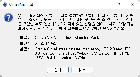 Virtual Box 확장 팩 설치