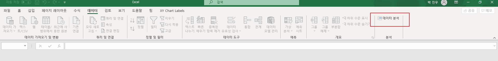 4. 툴바 -> 데이터 분석