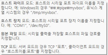 포트 번호 : virtualbox 내(guest)에서 사용하기 위한 직렬포트 번호를 의미