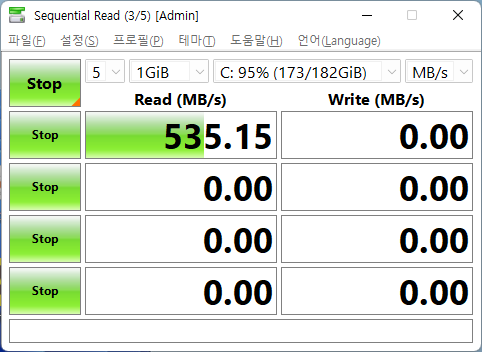 1 Gib : 파일 속도 테스트 하는 파일 크기를 지정합니다. 16MiB에서 64GiB까지 선택 가능.