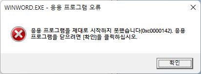 응용 프로그램을 제대로 시작하지 못했습니다(0xc0000142). 응용 프로그램을 닫으려면 [확인]을 클릭하십시오