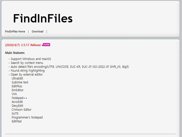 FindInFiles 홈페이지